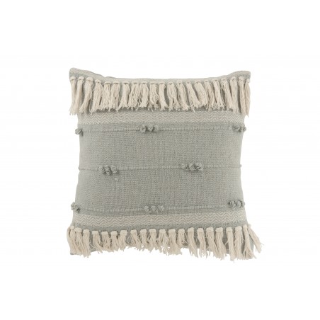 Coussin carré 45 cm x 45 cm, en coton, crème et noir, avec motifs graphiques en relief et franges sur une face, dos uni crème, garnissage polyester.